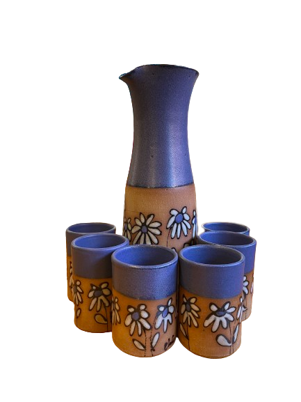 Juego para Pisco Sour, consistente en un jarro y seis vasos en cerámica Gres.